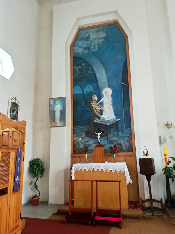 1843 годзе сюды прывезлі рэліквіі святога Казіміра. Бакавыя алтары таксама “аптычна маляваныя” - св. Антонія і Беззаганнага Зачаццця Марыі Панны - завяршаліся абразамі св. Вікенція і св. Казіміра адпаведна ў круглых рамах.