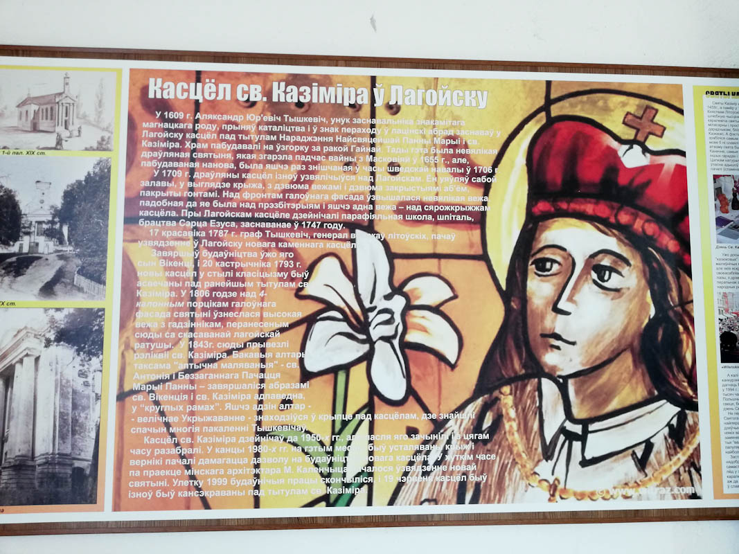 На стэндзе - інфармацыя пра гісторыю гэтай святыні, якая шмат разоў была знішчана, але нязменна аднаўлялася і кожны раз пад тытулам святога Казіміра.