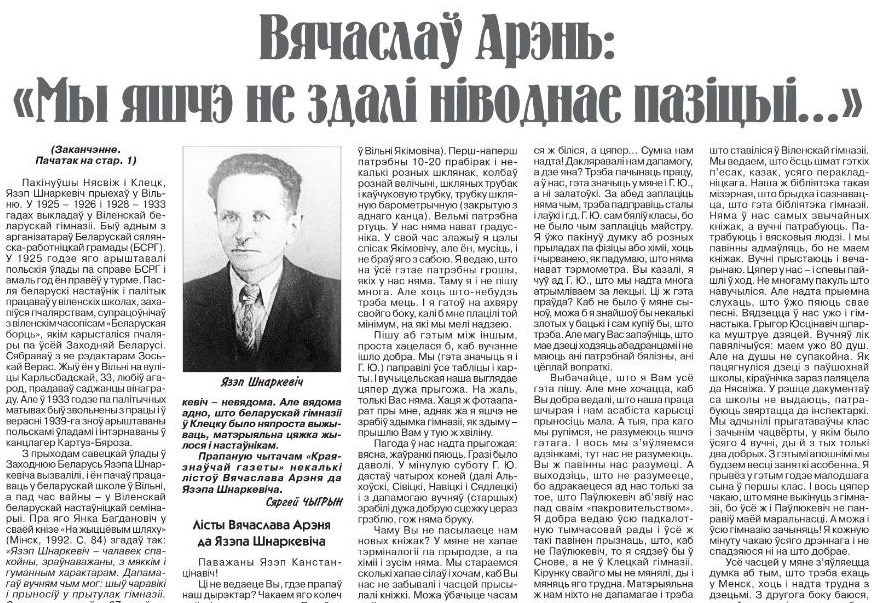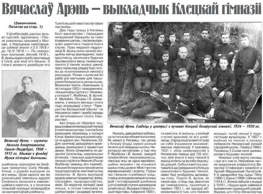 Настаўнік - той, хто мае асаблівы ўплыў на вучняў. Якімі былі настаўнікі пачатку 20 ст.? Пра Вячаслава Арэня, выкладчыка Клецкай гімназіі, расказвае Максім Гальпяровіч паводле артыкула Андрэя Блінца.