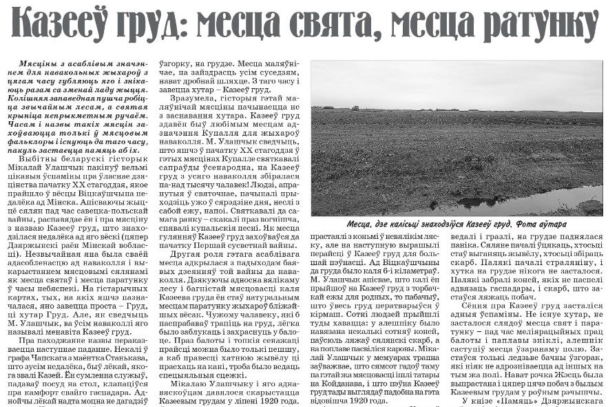 Чаму жыхары наваколля шанавалі мясціну, якая звалася Казееў груд? Хто такі Казей? Як гэтае месца ратавала людзей пад час вайны і чаму не засталося ад яго нічога акрамя ўспамінаў распавядаецца ў артыкуле Іллі Вярбілы.