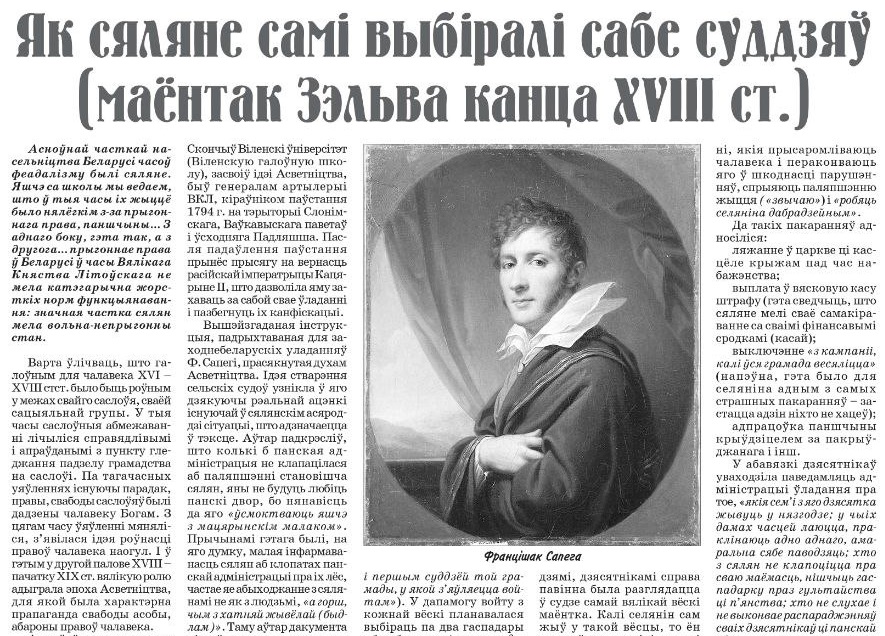 Ці маглі уплываць на свой лёс і жыццё сяляне ў часы Вялікага Княства Літоўскага? Хто такі "сельскі суддзя"? Якія справы разглядаў сельскі суд? Пра гэта і не толькі ў артыкуле Аляксандра Доўнара.
