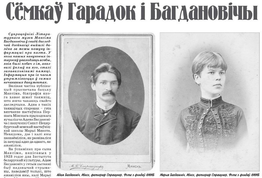 Невядома дзе і калі пазнаёміліся Адам і Марыя, бацькі Максіма Багдановіча, не захаваліся звесткі пра тое, як развіваліся іх адносіны, што прывялі да шлюбу, але некаторыя дакументы - сведкі іх жыцця, трапілі ў рукі пільных музейшчыкаў. Слухайце аповед пра іх у гэтай перадачы.