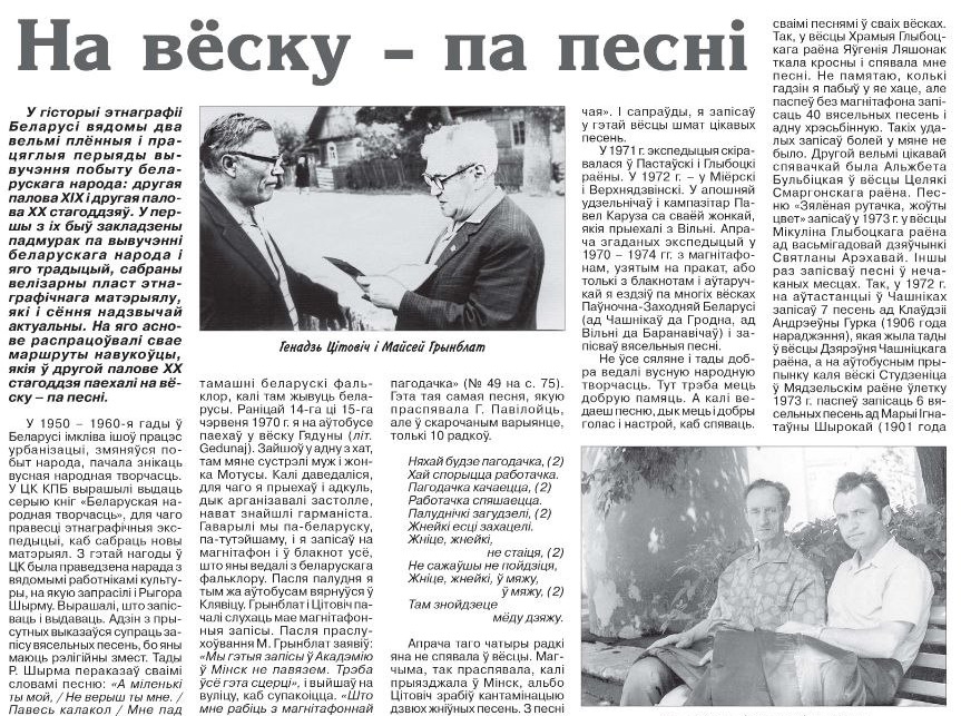 Што рабіць, калі ў краіне актыўна ідзе працэс урбанізацыі і з-за гэтага паступова пачынае знікаць вусная народная творчасць? Трэба выпраўляцца ў этнаграфічныя экспедыцыі. Як гэта было ў сярэдзіне XX ст. расказвае Максім Гальпяровіч паводле артыкула Сымона Барыса, удзельніка тагачасных экспедыцый.