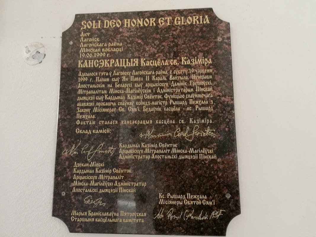 Касцёл Святога Казіміра ў Лагойску сустрэў нас шыльдай, што гэты будынак, нягледзячы на свой малады ўзрост - гісторыка-культурная каштоўнасць.