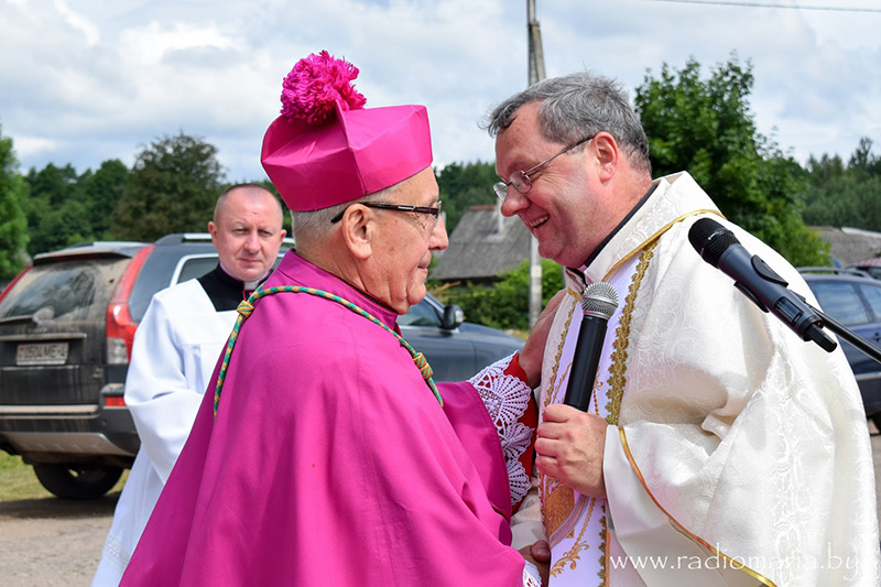 "Мы ўвайшлі сюды пад звон званоў, што вельмі сімвалічна, бо голас кс. Ігара, як моцны звон, гучыць ужо 25 гадоў на нашай зямлі, абвяшчаючы Божае слова, цэлебруючы сакрамэнты, кіруючы Божым народам, баронячы правы Касцёла і правы вернікаў", - адзначыў іерарх у сваім прывітальным слове.