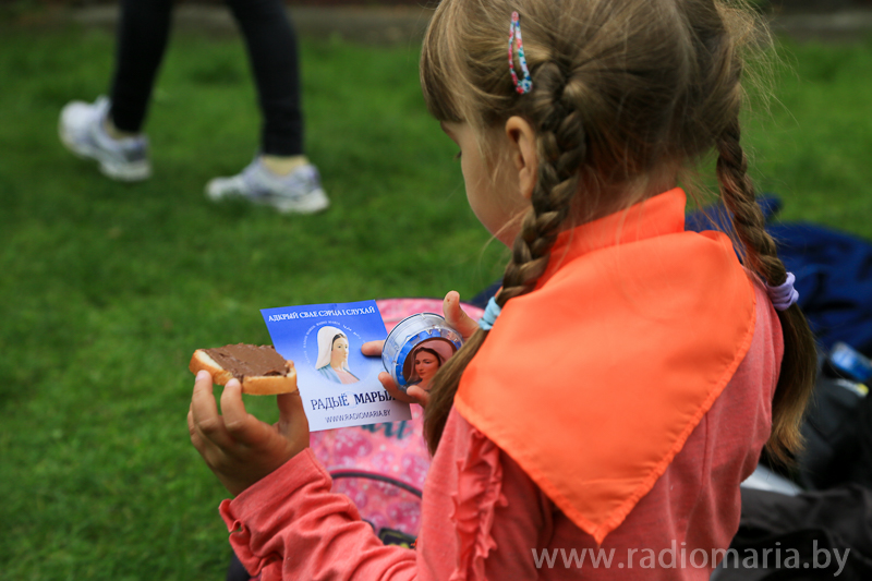 «Пасля доўгага падарожжа нас з цеплынёю прынялі супрацоўнікі "Радыё Марыя" Яўгенія, Алёна і Алесь. Разам з імі мы правялі эфір, падчас якога памаліліся Вяночак да Божай Міласэрнасці і літаніяй да Божай Міласэрнасці».